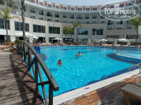 Отдыхала с мужем и дочкой 1.5 года. Отель очень понравился. Очень много семей с детками.Конечно больше русских.Но были и турки, немцы.Заселили сразу, просила номер на тихую сторону с балконом. Всё предоставили без доплат. Номера просторные, чистые, уютные. Детской кроватки нет, они сдвигают два кресла и дают матрас. Дочка маленькая, я боялась, что может упасть по этому спала с нами. Нас это ни сколько не расстроило, кровати там широкие. Персонал очень дружелюбный. кроме БАРМЕНА В ЛОББИ БАРЕ. Пока выпросишь что-нибудь налить, уже перехочится. Складывалось такое впечатление, что он с небес спустился нам смертным подавать. Любит доллары!!! А в остальном всё супер. Бассейн клёвый, море тоже. Мы брали коляску с собой, ездили сами, не очень далеко минут 10 максимум.