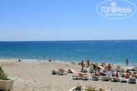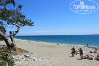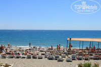 Пляж очень спорный. На любителя. Лежаков много. Есть пирс. С едой-напитками нельзя. Бара у пляжа нет. Ближайший метрах в 50. На самом пляже песок с камнями.Ходить еще можно. А вот заход в море ахтунг полный. Я заходил, но о заходе ребенка речи идти думаю не может..если только сразу нырять:)) Наш ребенок почему то сразу не полюбил море, скорее всего потому что за пределами пляжа больше заманух(горки,качели,батут) поэтому большую часть времени проводили у бассейна.