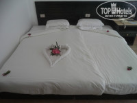 Всем приветик! Были в отеле с 10.06-18.06.2014г. Начнем с того, что опоздали на свой рейс, прилетели на 1 день позже. Никаких проблем с заселением не встретили. Номер дали на первом этаже с террасой (очень удобная вещь). Белье белоснежное, очень приятное к телу, уборка каждый день (мы оставляли доллар), нам каждый день устраивали сюрпризы в виде лебедей и сердечек с цветами. очень красиво))) даже обувь ровненько расставляли. мини-бар пополняли ежедневно. каждое утро осведомлялись о проблемах. один раз у нас в ванной была протечка воды, сообщили на ресепшн, устранили все, пока были на пляже.