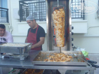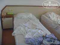 Теперь о номере - в нем есть все, что требуется, чтобы отдохнуть на море, т.е. 2 кровати, душ и туалет. Не понимаю людей, которые жалуются на отсутствие в номерах чего-то еще - вы на море приехали или в отеле отдыхать? Мы, лично, в номер приходили только ночевать. Да и некогда было разлеживаться особенно - график был жесткий - если на завтрак придешь поздно, на пляже не хватит лежаков, поэтому после завтрака нужно было быстро-быстро бежать на пляж. А так как горячая вода в номерах была исключительно с 2-х до 7-ми, то и перед ужином нужно было потарапливаться. Питание в отеле на удивление разнообразное и вкусное, главное овощи в изобилии, что нас порадовало. Да и мяса на обед и на ужин было достаточно - грех жаловаться.