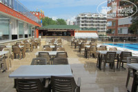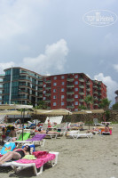 Единственное что радовало, это пляж-сразу через дорогу или по подземному переходу (зря его все ругают, он грязный, только после дождя). Пляж более или менее нормальный, плиты на входе в воду, но есть место и с песочком. Пляж поделен на 2 зоны, платный-с шезлонгами, столиками, матрасами, зонтиками, и бесплатный-с шезлонгами, навесами от солнца.