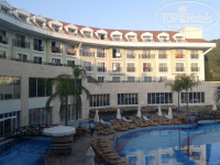Сам отель очень понравился. Просторный холл. Много мягкой мебели – кресла и диваны, а так же столики. Два красивых стеклянных лифта. Из окон открывается вид на бассейн и горы. Так же в холле есть бар. Еще фотосалон, где работают очень веселые ребята. У них можно заказать фотосессию. Фотографы делают снимки в отеле, у бассейна, а также на пляже. На цокольном этаже есть спа-салон, тренажерный зал и крытый бассейн, который летом не работает. Еще ниже – выход к бассейну. Там находится магазин, салон кожи и меха и парикмахерская. Так же там есть бар, интернет – салон, различные развлечения – аэрохоккей, бильярд, настольный футбол. И еще можно поиграть в x-box. Чуть дальше – диско-бар и ресторан а-ля-карт. Около бассейна находится детский мини-клуб, амфитеатр и снэк-бар.