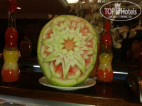 На обед и ужин всегда несколько видов мяса. В основном блюда из курицы и разные котлетки из полуфабрикатов. Но говядина тоже была. Есть еще супчики – всегда два вида. Так же свежие и тушеные овощи, много видов зелени для салата, есть уже готовые салаты. Некоторые очень даже ничего. Огромный выбор сладостей – тортики, пирожные, желе, пахлава нескольких видов. Напитки - чай, кофе, какао, соки из концентрата, в обед и ужин – вино. Голодным в ресторане очень сложно остаться. А вот прибавить пару килограммчиков – запросто.