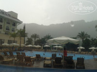 Бассейн занимает почти весь внутренний двор отеля. Деревянные мостики. Вазоны с пальмами. Всегда есть свободные лежаки. Есть детский бассейн, глубина 35 сантиметров. В основном бассейне – 1,4 м. В воде к сожалению очень много хлорки. Но так требует местная служба. Вода очень теплая – 25-26 градусов. Вся дневная и вечерняя анимация проходит около бассейна или в бассейне.
