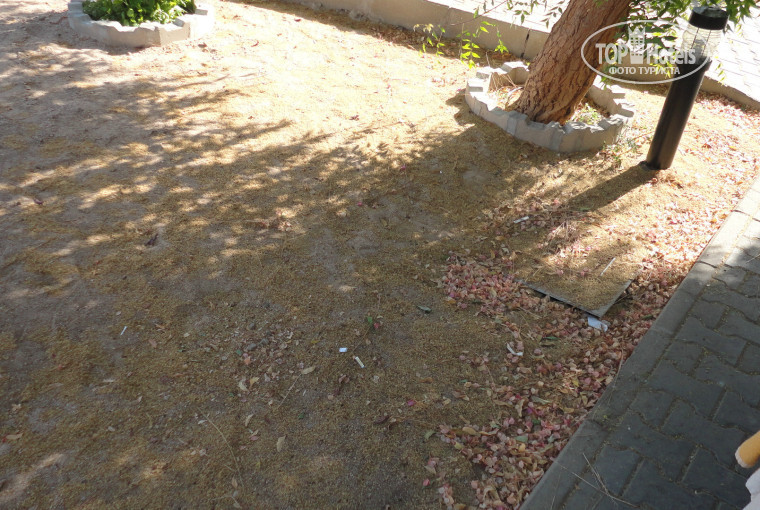 Выбирая отель думала, что вечерами будем сидеть с мужем на терассе, попивая чаек- кофеек, а дети резвиться на лужайке перед нами. Ага, щас. Песок, ободранные кусты, мусор, да и вообще невеселый вид радовал нас весь отпуск. Кое у каких бунгало есть газончики, их поливали, но там были комары.