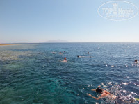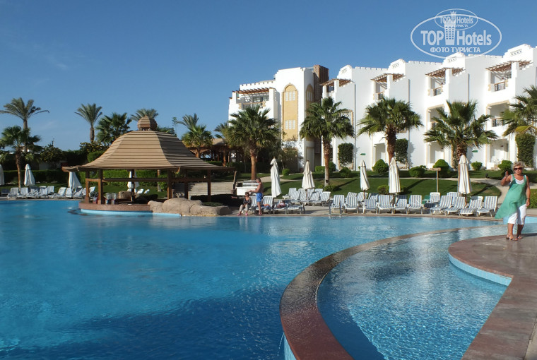 Ездили в октябре вдвоем с мужем. Мы в Египте не в первый раз, в Шарм-Эль-Шейхе второй. Отель выбирали спонтанно, по рекомендации турагентства. Я заранее списалась с гест релейшн Ольгой и для нас был забронирован номер на 3 этаже, только надо было ждать 12 часов дня, а муж не захотел. Нас заселили в 10 утра на 2 этаж. Питание нормальное, но мне показалось маловато фруктов, а мужу мяса, вина не было, напрягало отсутствие питьевой воды в номере. Территория большая, персонал доброжелательный. Но больше всего понравился коралловый риф. Ради него я бы не задумываясь вновь выбрала этот отель. Я видела не только множество разноцветных маленьких рыбок, но и больших Наполеонов и огромных черепах и даже дельфинов. Они подплыли прямо к буйкам. Ощущение, что плаваешь в большом аквариуме. Большой плюс - короткий понтон и отсутствие волн, правда у берега не купаются. До пляжа каждые 10-15 минут ходит автобус, хотя море близко. Недалеко находится Сохо Сквер с поющими фонтанами, на такси минут 5, пешком 20-30 минут. Отель рекомендую!