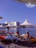 Пляж довольно маленький и плотный. Полотенца на входе в отель под залог 15?. Очень порадовали шезлонги и зонты на пляже. Конструкция шезлонга такова, что если садишься по середине, то головная часть складывается на тебя, шарахая, куда придётся. Очень странно, и не понятно, зачем так?! Для веселья надо было и в ногах подобное сделать, тогда бы он полностью складывался. Зонтики тоже «веселуха» (кидаю фото). Они полностью металлические, и не высокие. Когда встаёшь, постоянно о них ударяешься, замечено не однократно. Кроме того, у шезлонгов и зонтов ни одного столика, так что одежду кроме грибка зонтика разместить и негде, если конечно на песок не бросать. Море довольно чистое и приятное, рыбы присутствуют, так что поплавать в удовольствие можно. Аква развлечения тоже присутствуют. О ценах рассудите сами, фото прилагаю.