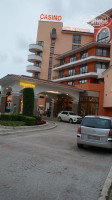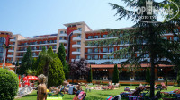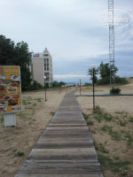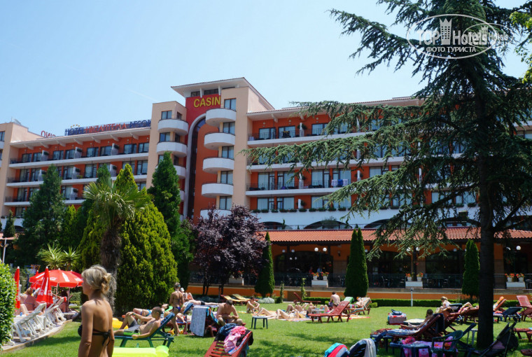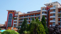 Итак все по порядку. Приехали мы в отель в 11 утра,сразу на нас одели браслеты,вещи оставили в камере хранения,т.к. заселение с 14,00.И мы пошли обходить владения и знакомиться с отелем. Дошли до моря,идти порядка минут 7 через всякие магазинчики и кафешки. Вот выдали нам ключ,номер оказался на 5 этаже,хороший чистый,все работало. Правда как все пишут огромный минус- это звукоизоляция. Т.к. двери в номера деревянный и тонкие,так,что все слышно,что происходит в коридоре,но мы привыкли.Окна выходили на бассейн, у нас в номере ловил бесплатный вайфай, а вот номера ниже там почему-то нет.Территория отеля красивая,ухоженная,с хорошим бассейном и отделением для детишек. В этом году установили новую детскую площадку,очень хорошую. Правда там стоит еще бабут(платный 2лева за 10минут).есть качалки,тоже платные (1лев Приблизительно 25 руб.). Игровая комната -скучновато, особенно для маленьких деток ,как наша,поиграть абсолютно невочто, один деревянный конструктор, мягкая игрушка и все. Попросили листочек с ручкой,так они сказали- у нас НЕТ. Только ПЛАТНО,пожалуйста раскрашивать фигурки,майки,сумки,ну сами понимаете для малявочек это совсем еще рано. Насчет питания,неплохо,но выбор совсем маленький,завтрак все 10 дней,что мы там были яйца в разный видах,сосиски в разных видах, каша только манная,правда два раза была гречневая, ну и хлопья,йогурты. Ну обед, ужин,там побольше выбора, супы обычно два вида. Анимация средненькая,для деток по вечерам в 20,30 мини диско. Как я уже писала были дожди,восновном по ночам,ну или днем,когда ребенок у нас спал)) Море и бассейны холодные. Пляж очень понравился,чистенький песочек,то что надо для деток,заход в море плавный,море было чистое,правда после шторма один день приплыли какие-то палки,но их очень оперативно стали убирать Все зонты и шезлонги платные, можно лечь на своем покрывале только за лежаками,между ними и перед ними нельзя,ходят смотрящие и гоняют. Недалеко от отеля есть автостанция,можно съездить в Старый город НЕСЕБР, билет стоит на чел 1лев, в одну сторону.Ехать буквально минут 10. На курорте нет никаких рынков, так,что фруктов совсем мало было, продают на маленьких лотках, стаканами черешню,малину,клубнику по 5 лев за стакан. А одна мадам подошла к нам и предложила купить черешню у нее 1кг,за 25 лев,только представьте почти 600руб. мы обалдели. Ну это разводила,в итоге купили за 5 лев,пол кило у не еже.