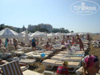 Когда мы приехали с местами проблем не было, но в последний день ели нашли 2 лежака под зонтиком. Не знаю, как будет в сезон, но люди наверное занимают в 6 утра. Хотя когда мы уходили в 11 часов с пляжа на эти лежаки люди только приходили. Вывод : если никто не будет занимать лежак, то всем всегда хватит. Пляж песочный, заход хороший. Но, подальше встречаются камни- будьте аккуратнее.
