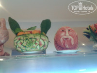 Все свежее и вкусное. На завтрак только не хватает (с моей точки зрения) какао. Оладушек и горячего молока. Очень много народу приходит к началу трапезы и потом все ворчат. НО, можно ходить на второй этаж или приходить попозже. Еда всегда имеется в наличии. Из фруктов вначале были апельсины, яблоки, а потом добавились персики и арбузы. Клубники и черешни не было. Покупали по дороге на пляж. Официанты напитки всегда приносили, когда я их об этом просила, а потом и сами уже узнавали и наливали то, что мы пили.