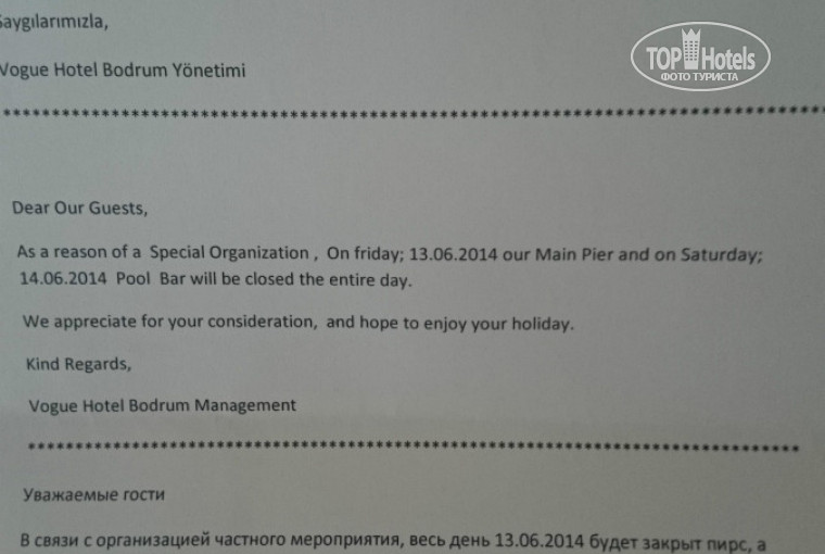 Недостаточно? Тогда у Вас есть возможность лицезреть приготовления к празднованию Дня рождения одного из друзей хозяев отеля, закрытие пул-бара, пирса, отмену занятий и без того унылой взрослой анимации.