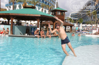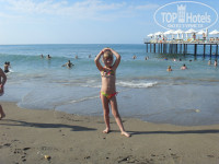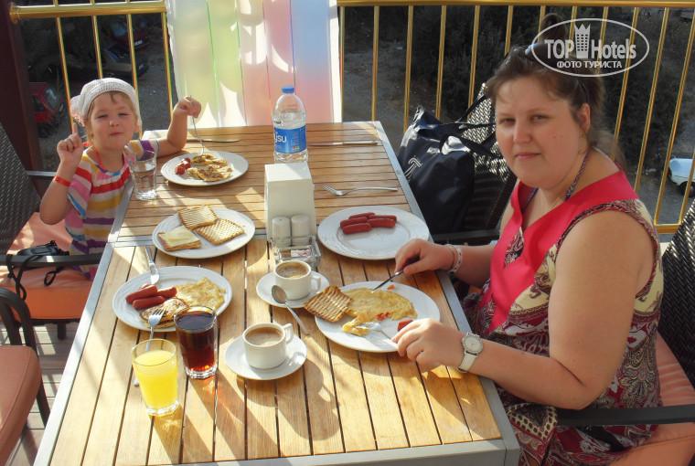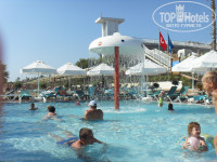 Нормальный отель, приехали рано утром, заселили только к обеду. Но мы не парились, позавтракали, переоделись в купальники и пошли обследовать территорию. Ходить далеко не пришлось, т.к. её нет))) В принципе это знали заранее, но всё равно не понравилось, только бассейны и всё. И поняли для себя, что море через дорогу - не для нас. Далековато, но пляж порадовал своей инфраструктурой. Было и где поплавать, и позагорать, и поесть. Там же давали бесплатное мороженное. Т.к. отель только открылся всё было новое, чистенькое, в лобби полно мягких диванчиков, где и зависали вечерами. СКУЧНО!!! очень скучно, анимации не было. Днём гимнастика в бассейне и всё. Вечером - детская (ужасная) пол часика, дочка после первого же её посещения отказалась туда ходить. Непонятные песенки с не говорящими по русски девушками не вдохновили. Днём - так же детей ничем не занимают. О вечерней для взрослых даже говорить не буду..."немецкий цирк" просто ужасен. По еде - так себе, голодными не останетесь как везде, но мяса маловато было. Спасал маленький столик, где был печёнка, копчёная рыбка (на скумбрию похожая) с пивасиком - прям как дома))) В общем отель нормальный, но сюда больше не поедем.