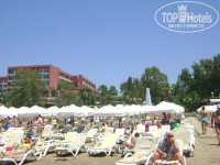 Пляж. Он находится буквально в двух минутах ходьбы от самого отеля. Песчаный, заход в море пологий, море очень мелкое при своих 170 так и не нашла места, где было хотя бы "по горлышко")) Волнами прибивало водоросли, но их убирали с берега (на некоторых соседних пляжах даже 5* отелей они так и лежали по несколько дней). Лежаки стоят очень тесно. Когда приехала основная масса гостей, лежаков стало не хватать. Но это проблема культуры наших людей - занять места, чтобы было, и не пользоваться ими. Раньше на пляже была волейбольная площадка, но в связи с нехваткой лежаков ее ликвидировали и поставили лежаки.