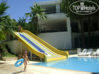 Инфраструктура и окрестности. В отеле 1 небольшой бассейн, 1 басс с горкой и 1 басс для малышей. Есть детская площадка, которая почти все время в тенечке. Вайфай на рецепшн есть, но скорость его просто "поражает", иногда просто невозможно подключиться. В ресторане есть стульчики для кормления малышей, микроволновка для подогрева детского питания. На территории есть скамеечки, разные скульптурки, растут апельсиновые деревья, много зелени. До Сиде по променаду минут 45-60 ходьбы (но можно доехать на долмуше), по пути много ресторанов-баров-кафе, магазинчики разные. Так же можно съездить в Манавгат, там шопинг, базар да и просто красиво. Если подняться до остановки долмушей, попадаете на дорогу, где много разных магазинов, минутах в 5 ходьбы есть банкомат Дениз-банка (Сбер). Так же недалеко есть маркет А-101, там можно купить оливковое масло, гранатовый соус и прочее дешевле и свежее, чем в магазинах для туристов, кстати, вода там стоит 0,45 лиры, а не 1$ как в тур. зоне.