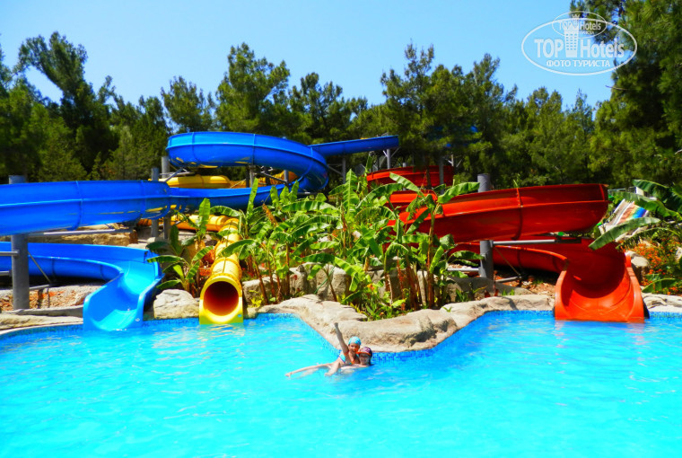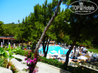 Мы отдыхали с 27,05 по 06,06,2014г. с мужем, дочей 9 лет и племянницей 13 лет. Приехали в отель в 8,30 утра. Поставили чемоданы и пошли на завтрак. После завтрака конечно же, никто не хотел нас размещать, т.к. заезд начинается в 14,00. Мы пошли гулять по территории, а после вернулись на ресепшн. По-русски, они практически не разговаривают, а может делают вид. Я спросила на английском понимает ли она меня на русском, она ответила NO. На английском спросила, готов ли наш семейный номер, в ответ услышала, что готов. Заселили нас в 11,00, чему мы были рады. Чемоданы сами укатили, т.к. было не дождаться грузчиков. Номер вполне приемлемый. Двухкомнатный, чистый номер на первом этаже с террасой. В туалете темный свет(экономят), муравьшки у раковины на стене бегают, но это меня нисколько не смущает. Очень много в отеле иностранцев: итальянцы, французы, англичане, турки. Но наших тоже достаточно! Питание очень достойное!!! Свежевыжатый сок на завтрак. Мороженое на обед и ужин. Разнообразие салатов. Разнообразие горячих блюд. Баранина, курица, тунец на гриле каждый день, говядина, кальмары, креветки. Есть диетическая еда. Мы ходили на ужин к 19,00, т.к. потом просто столика не найти, а на улице осы летают. Но сотрудники выставляют на столы благовонии от которых осы исчезали. Анимация - молодцы ребята, на отлично работают! Природа у отеля чудесная! Каждый день ходили за теннисный корт, там очень красивый закат! И есть спуск со скалы на море. У Эгейского моря очень красивые краски! Территория большая, кто не любит много ходить и ходить в гору, этот отель не для вас. Основной ресторан находиться на горе и приходиться с моря подниматься в гору. Для детей радость - это горки! Улетные горки! Есть даже для малышей! В баре почему-то для русских разливают турецкие виски, а если подходит иностранец для них импортные виски. Поэтому мужчины , говорите с ними на английском тогда, получите импорт.напитки. Бармены делают разнообразные коктейли алкогольные и безалкогольные: мохито, sex on the beach, пина колада. Отель находится удаленно от каких-то населенных пунктов. Кругом живая природа. Видели несколько раз варанов, один раз ужа. В целом, отель очень понравился!!!