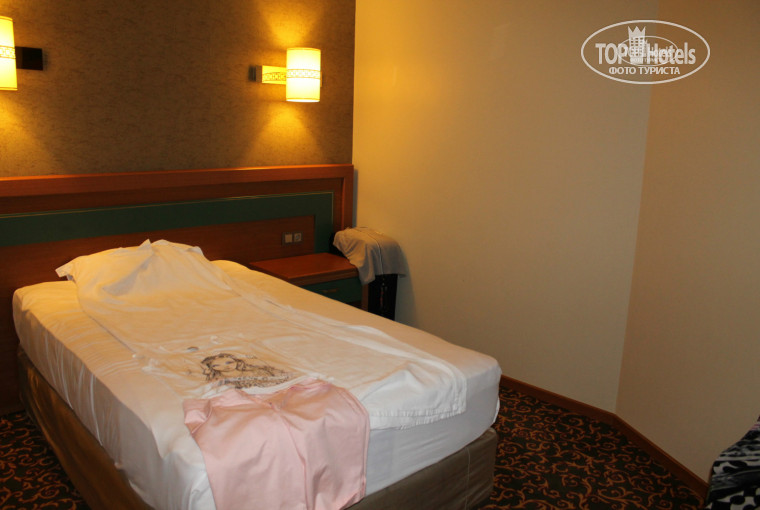 наконец нашла время отписаться о впечатлениях об отеле.В Турции в третий рази всегда везло с отелями.Приехали мы глубокой ночью,вчетвером(все женщины),у нас был заказан famili suit,нас попросили разместится на ночь в стандарте(2 огромные 2-х спальные кровати),а утром обещали в11.00 поменять номер.Все именно так и произошло,без головной боли и скандалов,как бы между прочим.Хотя стандарт был отличный(3702) с видом на море,но и suit(3609)тоже был отличный.В номерах есть специальный выключатель:НЕ БЕСПОКОИТЬ-нас не беспокоили,УБРАТЬ В НОМЕРЕ-у нас достойно убирали.Хочу сразу сказать мы любим чистоту-но не рабы пылинок.Теперь о питании:всегда можно вкусно поесть,была и рыба,и курица,и индюшка,и шаурма,и мидии,и много чего еще.Из фруктов-апельсины,нектарины,персики,яблоки,арбузы,дыни(не сладкие),сливы,абрикосы.Посетили ресторан а*ля карт-все было прекрасно!Нас обслуживал Кадир -веселый парень.Был предложен рыбный стол-и вечер потек неспешно и вкусно.Территория отеля большая- есть,где пофотографироваться и погулять,а бассейн с водопадом впечатляет.Пляж хороший,песчаный,местами заход в море с галькой,но можно отойти левее или правее и- все замечательно.Пляж постоянно убирают.Единственный минус-вытекающий со стороны отеля пресный "источник"-не знаю,что это такое-толи сливы отеля,толи природный,но в него кидают мусор,не очень приятно.А в общем отель неплохой,на ультра 5* совсем не тянет,но на хорошую 4*-да,могу рекомендовать отель для семейного отдыха.Просто,если начинать придраться ко всем и всему,то можно испортить отдых самой себе,просто многое можно и не замечать.Огромный привет всему коллективу отеля,спасибо.