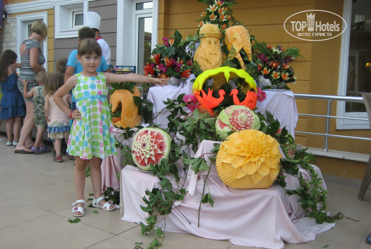 Детская анимация суперская, там Эка очень приветливая девушка, за ней дети хвостиком бегают, то им мордашки разрисуют, то свои рисунки принесут. Она всегда во время обеда подходила и приглашала на вечернюю анимацию, приятно, что ко всем детям по именам обращалась. Вот только разница во времени у нас 3 часа и дети не досиживали до конца спать просились. Да и взрослая анимация -расшевеливали даже самых ленивых! У бассейна зарядка, танцы, дартс, пинг-понг, горка. Скучно ни кому не было. Каждый вечер шоу , и народные танцы в костюмах, и огненное шоу и по битому стеклу ходили, и конкурсы всякие, и караоке , и в баре дискотека,и пенная вечеринка, и даже верблюдов приводили, ну что еще надо?