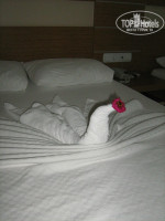 Только вчера вернулись из Турции. Отдыхали в этом отеле с дочкой 7-ми лет. Нам понравилось. Приехали в 8 утра и пришлось ждать заселения, это был, пожалуй, единственный неудобный момент, но только для меня, дочь сразу переоделась и отправилась в бассейн. В час дня нас нас заселили, попали мы в корпус С, о чем не пожалели, он более свободный, на этаже 16 комнат, так что, соседей мы видели редко, никто никому не мешал. Номер оказался очень светлым. С балкона было видно и море и горы, ну и жилые дома, но это совершенно не мешало. По вечерам на улице конечно шумновато, но мы спали с закрытым балконом, включали кондиционер на самую малую мощность и было в самый раз. Убирали номер каждый день, постельное белье меняли один раз, через 4 дня после заезда. Полотенца меняли все которые не висели на сушилках, т.е. оставишь полотенце возле раковины и его поменяют, чаевые оставляла один раз, так нам еще и лебедя из полотенца скрутили. Столовая в этом корпусе своя, но приходить лучше не к открытию, а минут на 30-40 позже, тогда будет не так много народу и можно сесть на удобные места. Мы старались сесть у окна, ощущение было что едим на воздухе. К тому что не будет мяса мы были готовы, но и того что было хватало. Курица каждый день, очень вкусная курица на гриле, рыба была 3 раза, филе не очень, а вот целиковая скумбрия вкусная, были куриные и говяжьи субпродукты, вполне прилично приготовленные. Овощей много, из фруктов яблоки, апельсины, сливы, виноград, арбуз и дыня. Ну и конечно сладости, много. До моря из корпуса С идти на три минуты дольше чем из А и В, из корпуса А до пляжа подземный переход, про него писали что воняет, это не совсем так, он чистый, но там в стоках застаивается вода и, само собой, болотом попахивает, но вы там находитесь меньше минуты, так что не страшно. Пляж песчаный, но в море каменные плиты, их не нужно бояться, просто знайте что они есть и первый раз заходите осторожно, потом привыкаешь и проблем нет, ни я , ни ребенок не разу не ударились. На глубине по горло на дне мелкий песок. Море было чистое, хотя первые 2 дня штормило и я думала, что нанесет грязи, но такого не было.