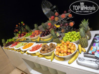 Обслуживание в ресторане отличное, еды много, все что душа пожелает, мясо на любой вкус (баранина, говядина,птица), рыба, фрукты, сладости, суши и т.д. По утрам мед в сотах, свежевыжитые соки и др.