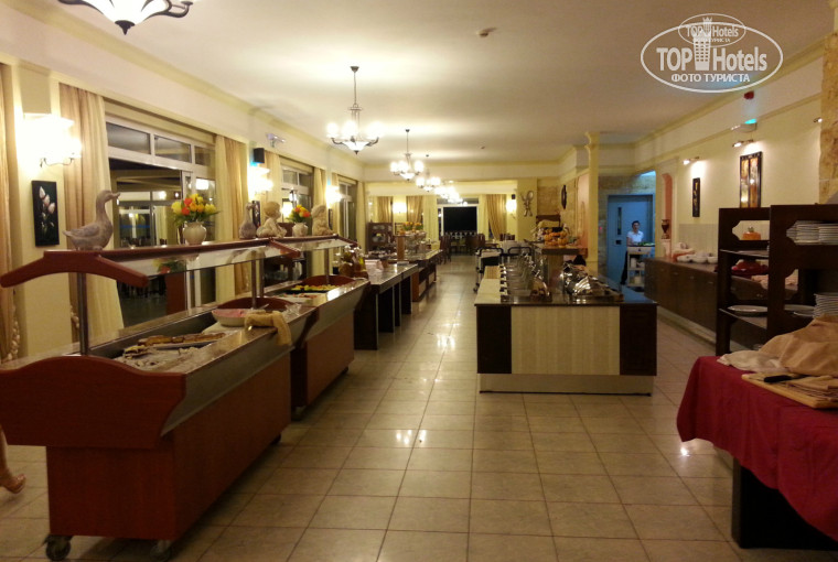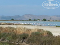 Приехали поздно, разместили быстро. На утро пошли менять номер. №188 очень шумный, много автомашин. Поменяли на №38, почти у моря, второй этаж, вид на закат. Купался в море каждый день, семья в бассейнах. Отличный детский, глубина до 70 см., с горками. У каждого бассейна бар, мороженое детям бесплатно , вино и узо для родителей (хотя в Турции вино вкуснее). Пляж обустроенный: кабинки, душ, бар платный. На машине объехали весь остров , наш пляж, пожалуй, самый чистый на северном побережье. Море чистое и не глубокое, песочек. Территория огромна, рядом отель Палас 5*, можно заходить, бассейн, бар. Большая площадка для мини гольфа, зоопарк с оленями. Любителям фауны рекомендую посетить соленое озеро с фламинго. Вода в озеро течет из моря по каналу, где живут большие крабы (не ловил). Кормили в отеле как люблю ( мясо отдельно, специи отдельно), фруктов маловато. Для взрослых проблема одна - как покинуть застолье. Кофе только утром. Далее соки и газировка. Напитки запрещены на вынос ( кроме детских бутылочек) Обед, ужин длится 2 часа, все сыты. На территории анимации мало, но есть тренажерный зал, корты. Музыкальный вечер один раз в неделю на ужин.