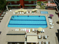 Бассейна два. Совсем маленький, с такой же маленькой горкой, где бесились дети, и большой между корпусами. Территорию возле бассейна (где и столики, и бар, и анимация) убирали каждый день после кофе-брейка-это мы наблюдали с балкона. В общем территория маленькая для такого количества людей