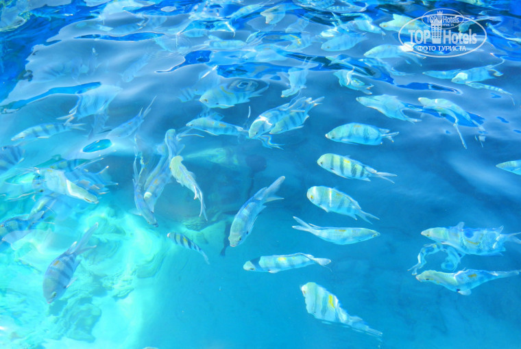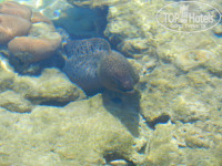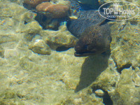 МОРЕ, оно великолепно, много рыб, три раза видели Наполеона, скатов, мурену (она есть на фото). Были на экскурсии в Рос-Мохаммеде и такого разнообразия там не увидели. Пляж хороший, удобный детям и взрослым.