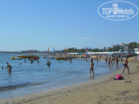 Места на пляже занимали часов в 8 утра, свободных было много в это время.Затем шли на завтрак, возвращались около 10-ти мест не было. Море теплое, из-за песка мутное, плавают водоросли.Встречаюся камни, но не смертельно, они нас не убили и не покалечили и даже не поцарапали)) Мусор на пляже оставляют сами же отдыхающие: покурили - бычок в песок ( пепельницы на пляже есть), попили- стакан под лежак, кукурузу съели- огрызок также под лежак....Ну есть же мусорки!!Чисто не там где убирают, а там где не мусорят!!!