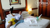 Накануне поездки читали отзывы об этом отели и были расстроены так как ехали на большой срок с поездкой в Израиль и Палестину. но страхи наши были напрасны. Прилетели в обед и нас заселили сразу угостив прохладительным напитком. В первый день нас заселили на 1 этаж переспав мы попросились на 2 этаж и нас заселили без всяких проблем с видом на сад. Отдыхали с 11- по 30 июня. В номере все работало сейф холодильник фен телевизор сантехника. Полотенца и постель чистые. Персонал приветливый доброжелательный. Бассейн большой красивый есть горка вечером подсветка разноцветная.