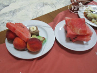 Питание также устроило. Правда, возмущало, что видят, но повара режут подпорченные помидоры, полны вазочки несвежих персиков. Но было и прекрасное мясо, рыба, курочка, арбузы, тортики. Разнообразие достойное для взрослых. Думаю, что для маленьких детей все же разнообразия пищи недостаточно. Обыновенных свежих блинчиков бы-и было бы меньше недовольных. Но мои взрослые дети-довольны всем, хотя, обычно, им трудно угодить.