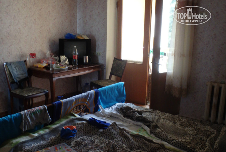 Номерной фонд довольно большой. У нас был 221 стандарт 1 категории, т.е. улучшенный. Отличался он от боковых по сути только видом на море. Номер в целом неплохой. Метров 14, с высоким потолком, большим балконом, старинной мебелью, бумажные обои, санузел и холл с обновленным ремонтом (правда, много мелких косяков, таких как торчащие оголенные провода от бывшего когда-то светильника, краны, крутящиеся не в те стороны и перепутанные, шкаф-купе на соплях, старые розетки, так что нужен переходник пр.) Но это мелочи.