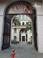 Здание Амры уже с дороги заманивает зайти на его территорию. Колонны, высокие окна, просторные коридоры, высокие потолки, красивая панорама на море. Можно любоваться без конца… Раньше здесь отдыхали лишь партийные сотрудники.