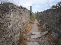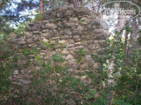 Ну а кому этот маршрут кажется слишком долгим, но в душе есть тяга к археологии, рекомендую прогуляться на мыс слева от пляжа. Многие совершают променад по прибрежной линии, не углубляясь в лесок, а там тоже есть развалины древнего поселка, причем не маленького. Остатки фундаментов видны даже на краю скал, а в леске сохранились даже стены с аркой.