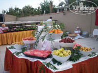 Бары-рестораны. Выбор напитков на нормальном уровне, пиво приличное. Вино – в бутылках, красное и белое. Местное, «Афродита». В ресторане ставят на столики. Не французское, конечно, но и не типа «Юппи» в бочонках, как во многих отелях. Водка, виски, джин – стандартный набор. Бармены обслуживают на уровне. Официанты тоже тарелки редко бьют, но два момента мне не понравились. 1) В виде приветствия могут закричать: «О, здорово, братан!» или что-нибудь подобное. Понимаю, что наши же их и научили, но тем не менее такое панибратство не всем нравится. 2) Несколько раз замечал, что оставшиеся на столах фрукты они снова ложили на раздачу. А кто эти фрукты какими руками хватал, может, на пол роняли! Хотя бы мыли еще раз. А в остальном – питание просто супер! Общались с туристами из 5*, так они нам завидовали и слюной исходили! Мясо, рыба – каждый день в разных видах! Уже в апреле подавали арбузы! Может, год такой урожайный на них, не знаю. И клубника! И это в 4*! Шаурма, туристы берут сами, а не повар накладывает по норме. И это был первый отель, где моему желудку не нужно было перестраиваться. Специй в меру, кому нужно еще – берут сами.