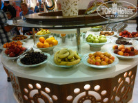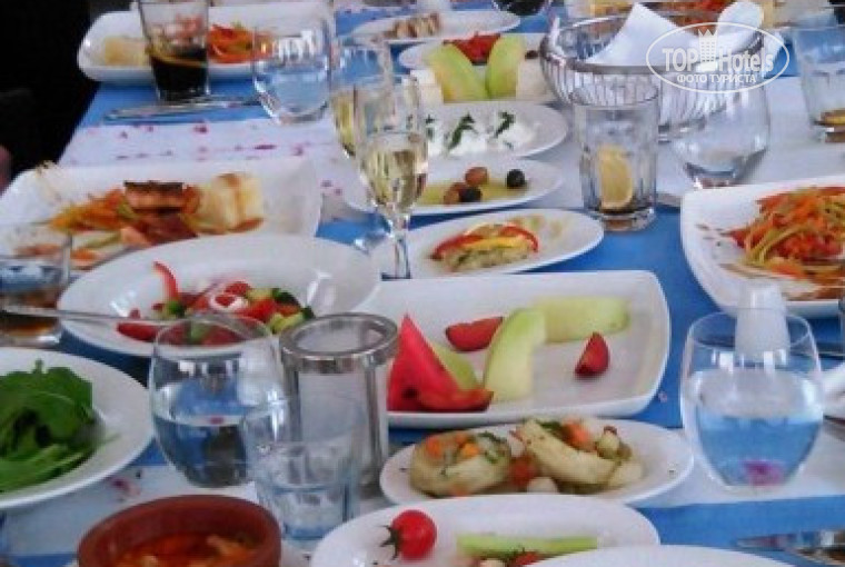 Впервые я не могу высказать каких либо претензий…. Пища на любой вкус. Мясо всяких видов: баранина, говядина, кура, индейка. Во всевозможных вариациях: жареная, пареная, вареная. Рыба тоже всякая: форель, лосось, морская… Морепродукты: мидии, кальмары, креветки. Даже подобие красной икры))). Печень. Хит: язык говяжий))) . На гарнир тоже разнообразие: спагетти-макароны-картошка (разнообразно приготовленная, в том числе пюре), овощи…. Десертов-тортов-пирожных: на любой вкус! Фруктов море. Мы застали: черешня, киви, персики, нектарины, яблоки, апельсины, виноград, сливы, алыча, бананы, грейпфруты, абрикосы, ананасы, дыни, арбузы. Клубника уже отошла, два раза только была.