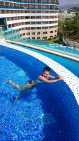 Посетили в первый день хамам. Всем советую. Ощущения потрясающие. На территории отеля классные бассейны. Очень понравилось из маленького бассейна (он прохладный) нырять в большой (как в парное молоко). Каждый день ходили на море. Очень удобный спуск на лифте. Муж нырял, а мы с дочерью плавали в маске. Вода прозрачная и можно наблюдать рыбок. Ходили в аквапарк. Остались очень довольны.