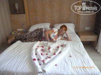 Хороший отель. Говорят в основном на немецком. Русский знают плохо. Обслуживание в ресторанах хорошее, только для немцев. Ну мы не гордые- сами сходим и принесем))))) К русским там отношение среднее. Мы ездили компанией 5 взрослых и 4 детей ( семьями). На респшне сразу взяли с нас по 50$ за размещение в номерах. Для детей там великолепный отдых. Пляж чистый. Я бы сказала отель находиться на 3 линии. Для семейного отдыха вполне подходит. Анимация великолепная.
