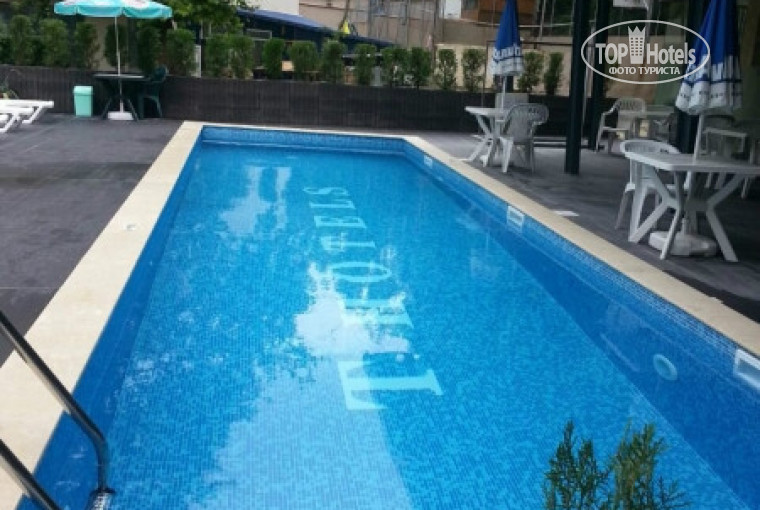 Питание: завтраки - несколько видов колбасы, сыра, омлеты, макароны, хлопья, и всего прочего молочного, обеды и ужины получше и разнообразнее, все свежее и вкусное. Из автомата мы брали только горячий шоколад, все остальные напитки кофе, соки не вкусные. Отличный заварной кофе есть в лоби-баре за 2,5 лева( 20 гривен). Интернет в номерах платный; в лоби-баре, возле бассейна, в столовой и на игровой площадке бесплатный. Иногда пропадал, но поговорить в скайпе, по виберу или в разных социалках, а также загрузить фотки в Гугл + всегда удавалось. Расположение отеля удачное, к морю спуститься 5 минут медленным шагом, но мы с дочерью ходили на пляжи возле отеля "Адмирал" (около 10-15 минут медленным шагом), там прямо на пляже был бесплатный детский городок, в котором после купания в море детишки веселились. Возле отеля находится аквапарк "Акваполис" ( детский 16 лев, взрослый 33 лева), выгоднее брать билеты на целый день. В целом курорт очень хороший, развлечений море :) Удачного всем отдыха и позитивного настроения всегда! _________________________ _____________________________________________Дополнение к предыдущему отзыву. Тут писали, что бассейна своего нет, но он на самом деле уже есть, фото в подтверждение прикрепляю :)