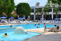 Приехали в отель около 6 утра, сразу после завтрака дали двухкомнатный номер, сначала были не в восторге: тесновато, древняя мебель, горячая вода была чуть теплая и т.д., но затем привыкли, вода бежала горячая))). Территория понравилась: ухоженная , зеленая, чистая, только рядом идет строительство другого отеля, немного смущало, потом не замечали. Кормили средненько, кроме курицы из мяса и один раз индейки ничего не было. Пляж небольшой, песок, заход в море удобный, особенно для детей не глубоко. Развлечения каждый вечер. Вообщем отель оправдывает 4* эконом-класса.