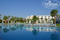 Территория: достаточно большая, можно прогуляться, очень зеленая, ухоженная. Два бассейна - большой главный с равномерной глубиной везде. Чистый и очень теплый, купаться в нем одно удовольствие! Малый бассейн совсем невелик, вроде как детский, но все детишки обычно в главном вместе с взрослыми (есть даже одна небольшая водная горка), так что радостные вопли киндеров мне в обед устраивать сиесту не мешали))). Лежаков всегда хватало, единственное, что после 10-11 утра тем, кто любит поспать, было сложно найти пустой лежак в тенечке под зонтиком.