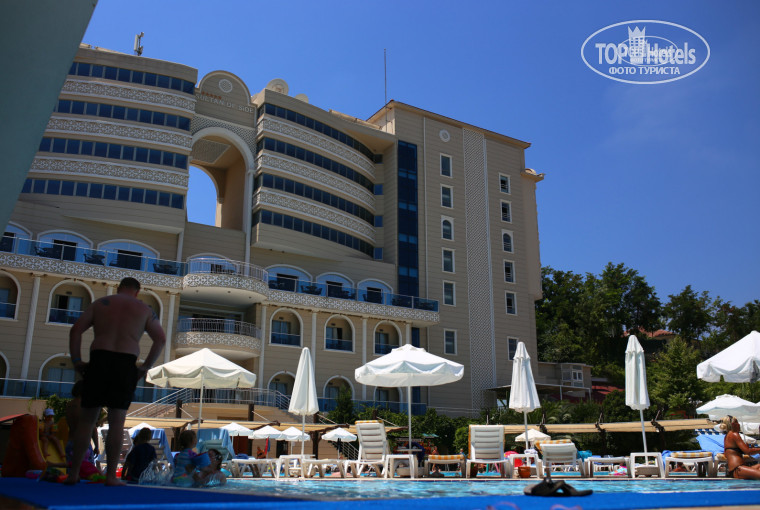 Море через 2 отеля от Султана (главное фото отеля на сайте уж сильно устарело) Но до пляжа идти минут 5-7 по очень симпатичной дорожке, да и после съеденного лучше прогуляться :)))