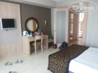Месяц выбирала отель, чтобы не было проблем с едой и было бы меньше русских… Были в бешеном восторге уже с заселения. Приехали в 10, и никуда нас не отправили гулять , а сразу же заселили. Приятный мальчик проводил нас в номер и довёз чемодан. Очень смущённо взял чаевые, но потом в течении отдыха ещё не раз нам помогал. Номер состоял из 2-х комнат: с двуспальной кроватью и 2-х этажной кроватью детской. Отлично работающий кондиционер, фен, холодильник с водой и соками, чистые полотенца,всё работающее.