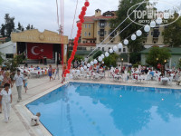 Посетили отель в начале июня, с пятилетней дочкой. Нам понравилось всё, нареканий никаких нет. Питание "всё включено", довольно разнообразное. Раз в две недели в отеле устраивают праздничный ужин на улице -- Турецкая ночь. У бассейна накрывают столы, украшают шариками, еще больше сладостей, фруктов, национальных блюд. Выступление турецкого танцевального коллектива. Всё это очень весело!)))