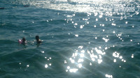 ПЛЯЖ_совместный с соседним отелем, идти с детками минут 5-7. Лежаки до 09.00- первые 4 ряда заняты, но свободный найти можно. Пляж мелкая галька-песок. Дети купаются только с "надувняками", т.к. заход почти сразу глубокий. Есть пирс- 2 лестницы для спуска. можно понырять. Под пирсом- кусачие иногда рыбки! Бар у пляжа- дают воду и газировку в маленьких стаканчиках (по горячему песку- не находишься после 11). Для сравнения- в сосед.пляжном баре- дают воду в бутылках, сок со льдом, газировку....нашему отелю можно брать и у них!