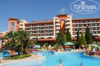 По питанию - еда была наша, человеческая. Если в Египте мои дети питались только апельсинами, то здесь они кушали много и разнообразно. Очень понравились гуляш с шампиньонами, лазанья, баклажаны и кабачки, спаржевая фасоль, запечённый картофель, стейки из свинины. По фруктам были сливы, персики, абрикосы, арбузы, понятно, что яблоки и апельсины. Единственное, что смущало - отсутствие каш на завтрак, (для моей дочки хотелось бы овсянку на завтрак). Пару раз была гречка и манка. В остальном - все виды омлетов, яиц, хлопьев, йогурт, гренки и сосиски. На летней террасе жарят блинчики, но за ними надо отстоять приличную очередь. Очень разочаровал "рыбный ресторан". Одно название, ни рыбы ни ресторана. Салат из тунца - это консерва, форель в фольге принесли сгоревшую. В остальном - всё прекрасно. В ресторан пиццы и курицы не ходили, зато пицца за 2 лева у торговцев на улицы -объедение. Ещё с 11.00 - вместо блинчиков, на террасе хот-доги.