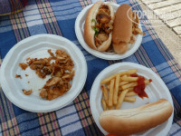Питание: отличное. Голодными никто не оставался. Всего полно, очереди были, но это не напрягало. Утром на улице готовили омлет, яичницу, иногда блинчики. Вечером тоже жарили на гриле курицу, рыбу, котлетки, картофель фри и т.д. Как такового детского меню нет, но чем накормить ребенка всегда есть. На улице (прямо у моря) бабушка выпекала лепешки (с сахаром, зеленью). Второй завтрак и полдник (на улице) - гамбургеры, фри, овощи, зелень (всего в изобилии). Вечером у пляжа - арбузы. Напитки - стоят автоматы с соком, кулеры с водой, в баре кола, фанта, спрайт. Алкоголь - пиво эфес, вино белое и красное, раки, виски. Мороженое платно 1-2 доллара.
