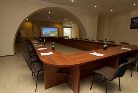 Конференц-зал расположен на 0-м этаже гостиничного комплекса. Зал представляет собой помещение с круглым столом, который прекрасно подойдет для деловых встреч и конференций.