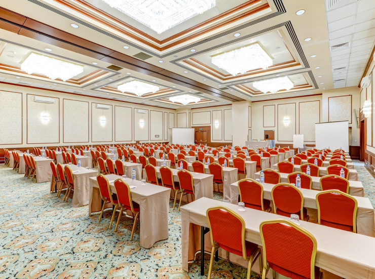 Самый большой и представительный зал отеля, расположенный на 1 этаже. Площадь 320 кв.м, максимальная вместимость 330 человек.