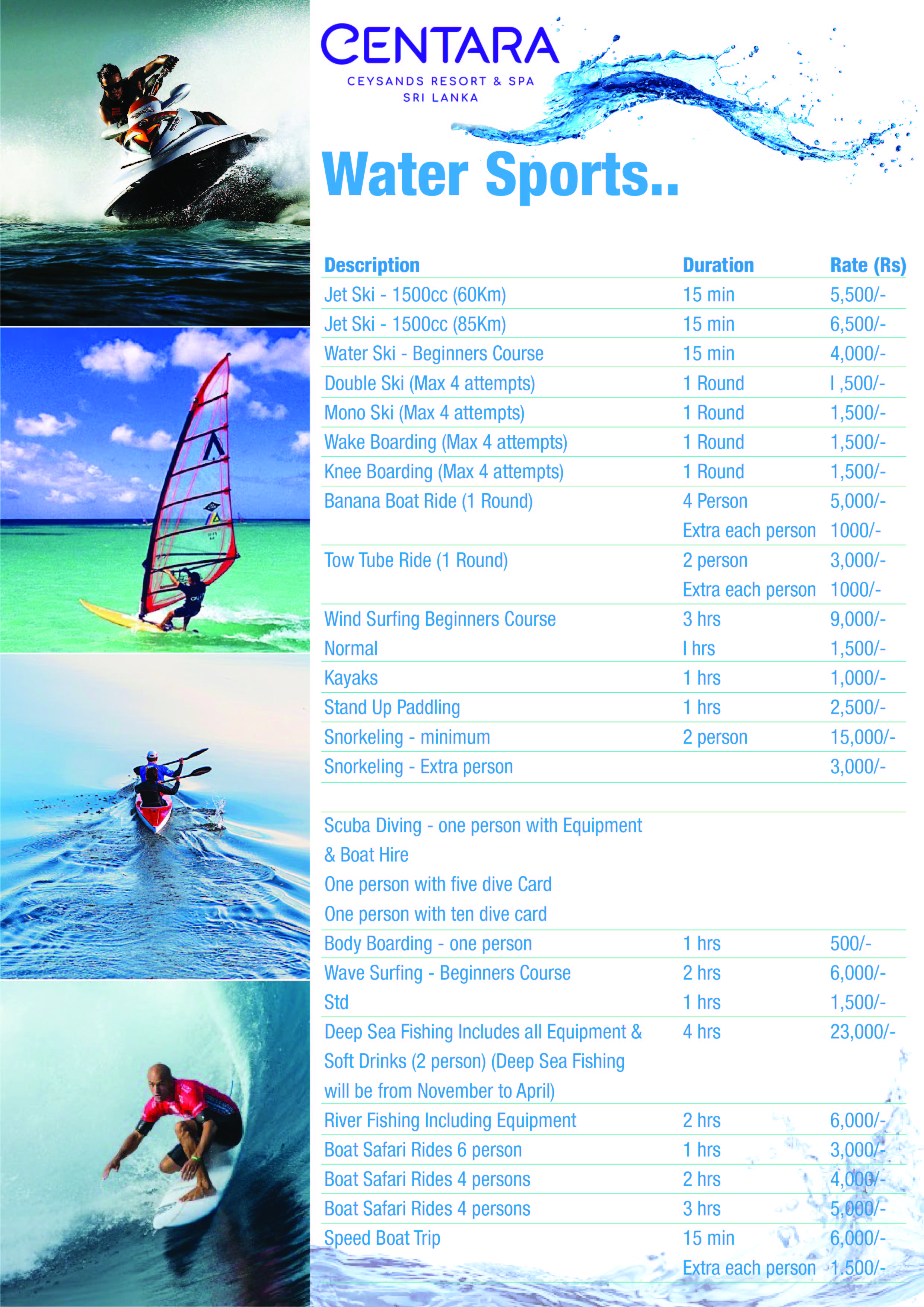 Широкий выбор водных видов спорта за дополнительную плату. Время работы с 09.00 до 18.00