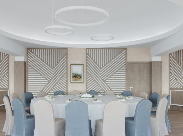 В уютном зале созданы все условия для проведения деловых встреч и презентаций. Интерьер и обстановка помещения способствуют эффективной коммуникации.