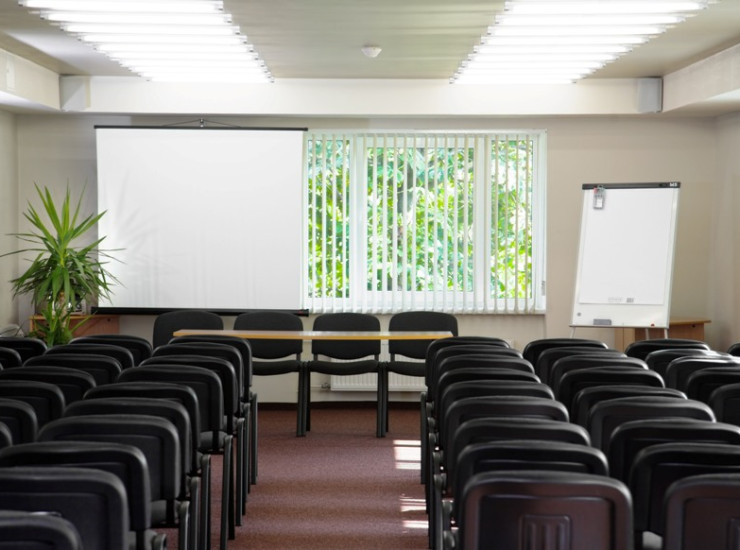 Современный зал для конференций на пятом этаже гостиницы подходит для проведения разных деловых встреч, семинаров и других мероприятий. Максимальное число участников - 80. Зал оборудован аудио устройствами, экраном, проектором, DVD. Помещение с полным кондиционированием воздуха